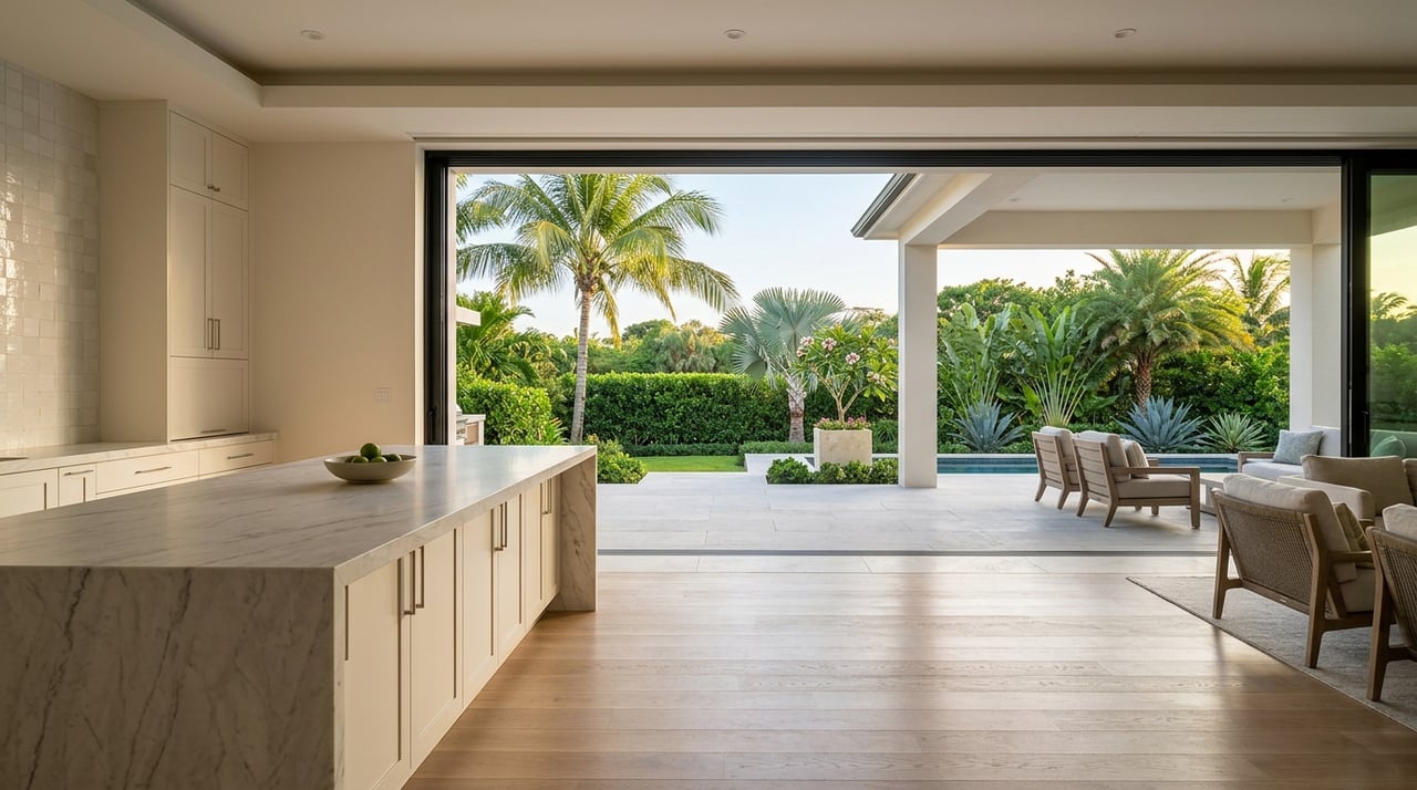Gulf-facing kitchen and living spaces designed for connection and comfort